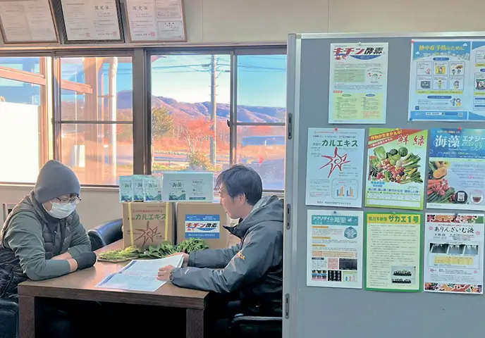 地元農家の皆様を一軒一軒訪問し、栽培に関するお悩みを丁寧にヒアリング。その内容に応じて、最適な資材を提案・販売しています。