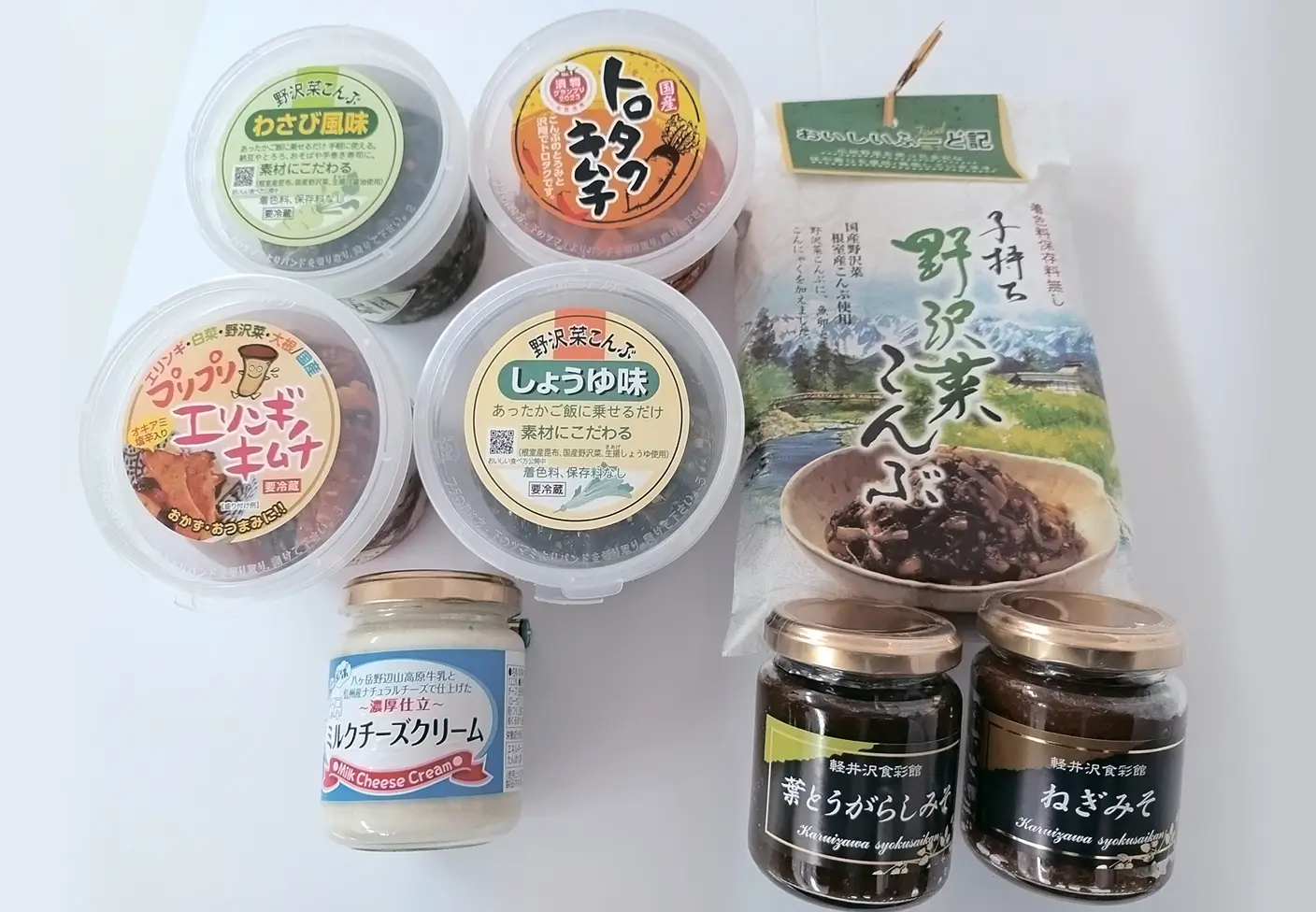 主力商品は「野沢菜こんぶ」、「エリンギキムチ」、「ミルクチーズクリーム」、「具だくさんタルタルソース」などです。