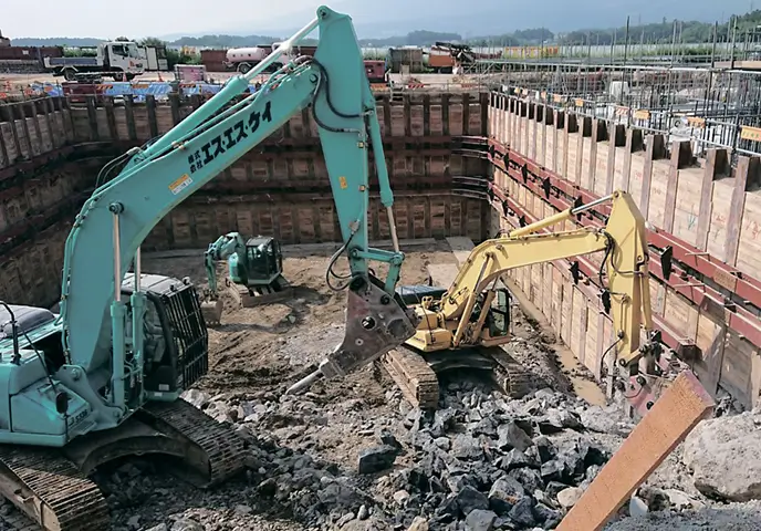 河川改修や高速道路基盤整備工事など、大型重機を使用した大規模造成工事をはじめ、ゴルフ場やホテルなどの外構・植栽工事など、土木工事全般を手掛け、皆様の豊かで快適な暮らしの実現に貢献しています。